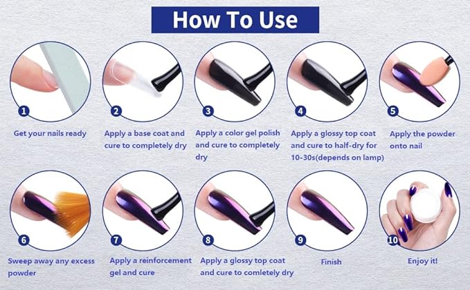 - WIDE APPLICATION:Artdone chrome powder can be applied on UV gel nails, acrylic nails, natural nails or false nail tips. You can use them very easily.
