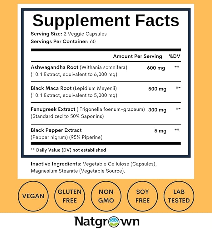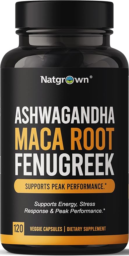 Natgrown Ashwagandha Maca Root Fenugreek Extract Capsules Supplement for Men & Women - Vegan Pills - (120 Count)