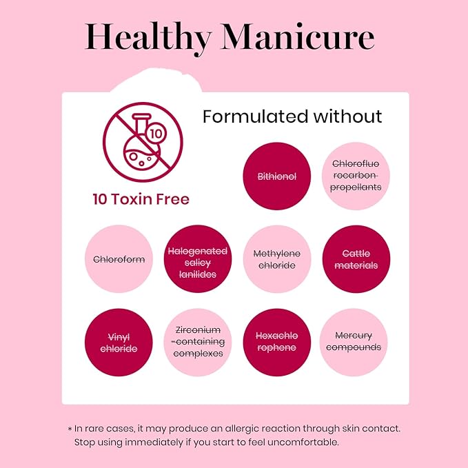 - WARNING: May cause an allergic reaction by skin contact. Read directions for use carefully. Professionally formulated and only used for nails. Avoid contact with eyes, mouth, and skin. In case of contact with them, rinse immediately with water. If there is any incident, contact the doctor immediately. Stop using the product if redness and itching develop. Keep out of the reach of children.