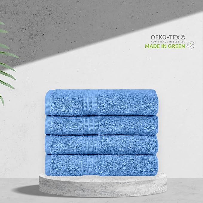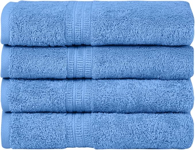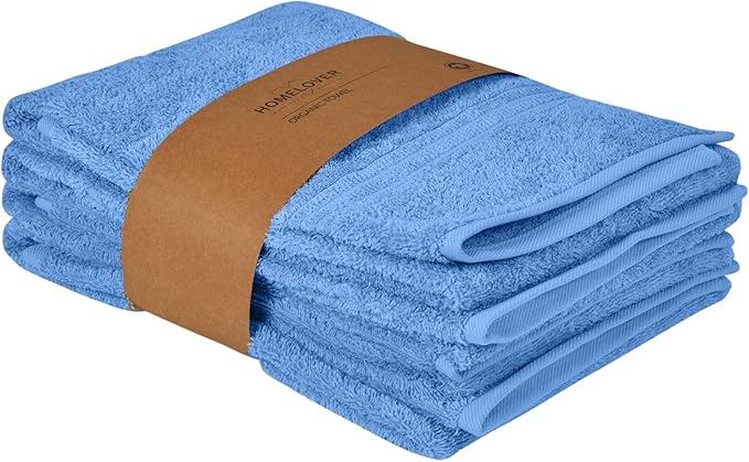 HOMELOVER 4 Piece Luxury Hand Towel Set - 100% Organic Cotton, 500 GSM, Hotel Quality, Highly Absorbent, Soft & Quick Drying Bathroom & Kitchen Towel for Face & Hand Washing (Sky Blue)