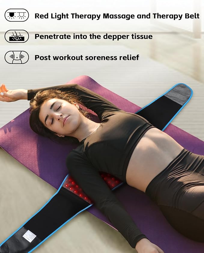 - SHINE WELL Red Light Therapy Belt, Infrared Therapy, Battery Powered with 3 Vibration Modes 3 Heating Levels Red Light Therapy Device for Back Pain Relief, Inflammation, Elbow and Muscle Pain