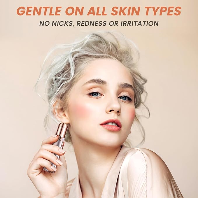 Facial Hair Remover for Women- as Seen on TV Painless Face Shaver -Mini Hair Remover, Electric Razor Shaver Portable Bikini Epilator for Lips, Chin, Armpit, Peach Fuzz, Fingers, Neck, Cheek(Champagne