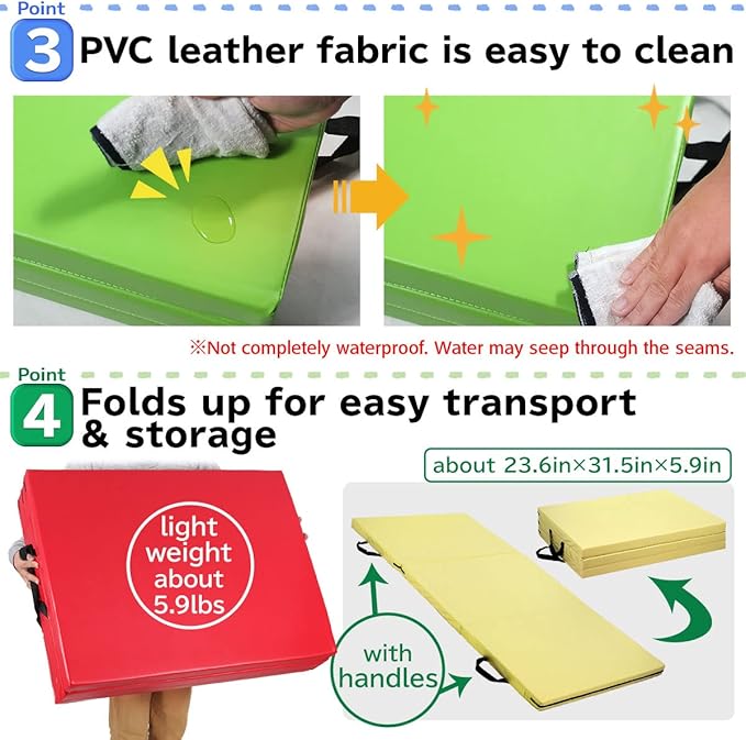 - This mat can be folded in thirds, making it lightweight and compact despite its wide size, making it easy to carry.
