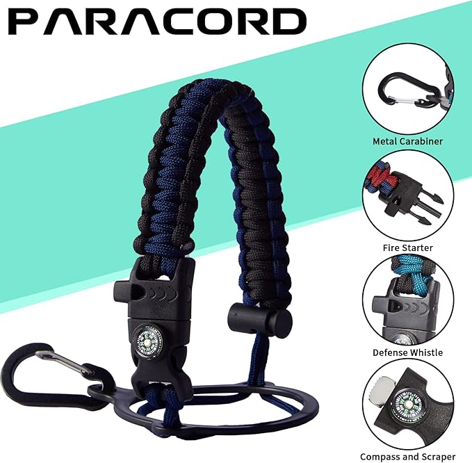 - UNIQUE PARACORD—Perfect Accessories: bright color paracord matches the flask water bottle to give you a youthful vibe while adding a personal style. It comes with a compass, safety loop, metal carabiner, flint, igniter, and whistle to become your survival tool for your wild adventures