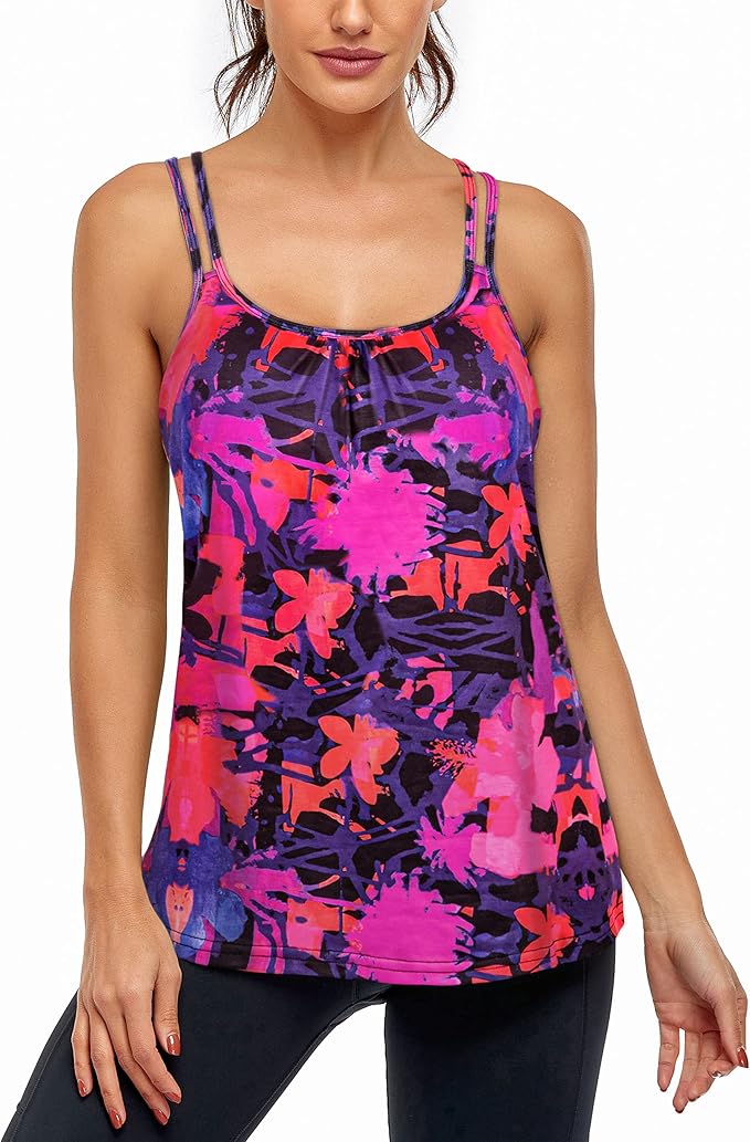 - √Built in Bra: Designed for low impact. Shelf bra tank tops built in removable pads gives a comfort feel, provides light support and coverage. You can also take off the pads and wear a sports bra under for high impact.