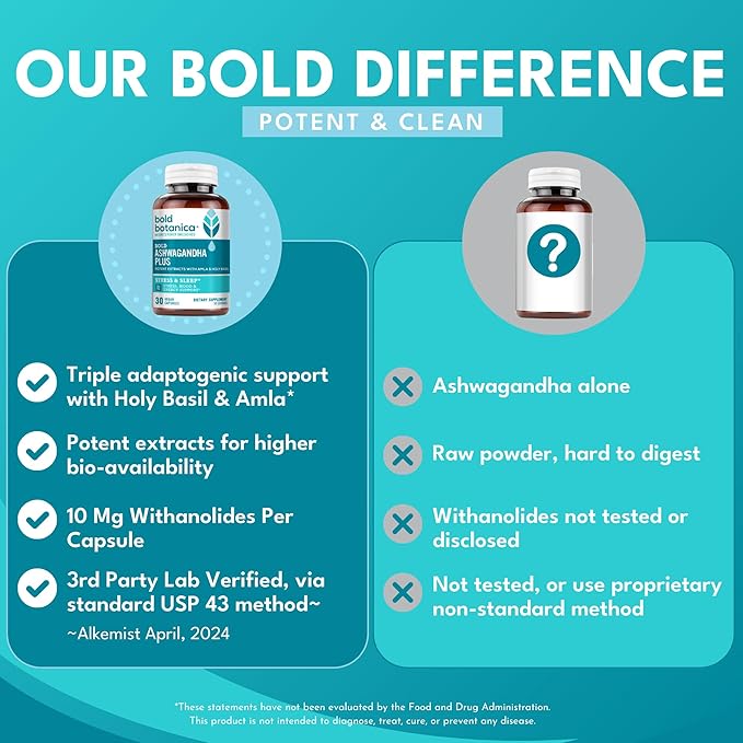 - Stress & Sleep Support-- Bold Ashwagandha Plus contains two concentrated, premium extracts of Ashwagandha, not just raw powder. We amplify the formula with Amla and Holy Basil for a powerful triple adaptogenic combination*