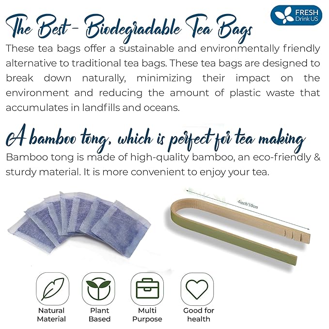 FRESHDRINKUS Premium 55 Butterfly Pea Flowers Tea Bags,100% Pure, Organic, Non GMO, Made With Organic Bags, Sugar/ Caffeine/ Gluten Free, Wildcrafted, Vegan, Handmade Product