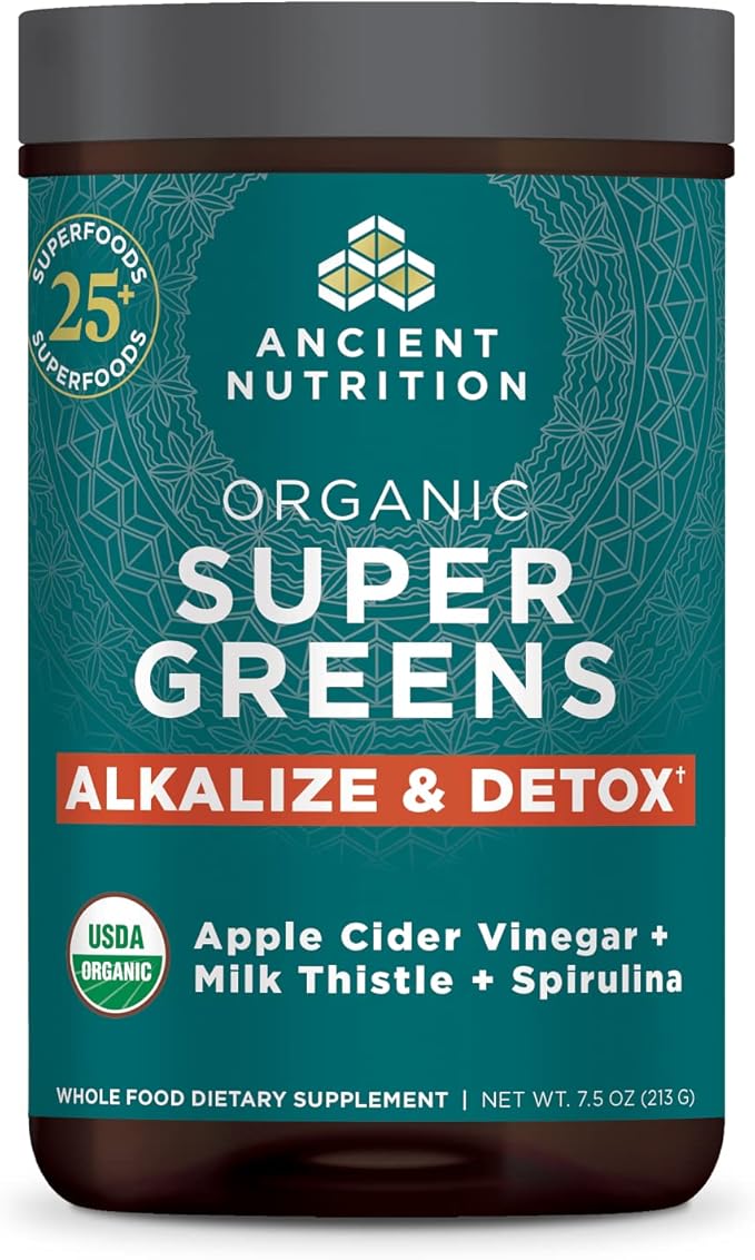 Ancient Nutrition Supergreens Alkalize & Detox Powder, Organic Superfood Powder Made from Real Fruits, Vegetables and Herbs, for Digestive and Energy Support, 25 Servings, 7.5oz