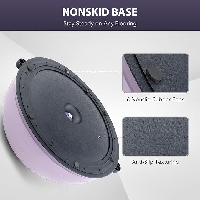 - BALL PUMP INCLUDED: A complete combo, this half-dome stability ball comes with a complimentary foot pump that makes it easy to get fully inflated to 9.8” in under 5 minutes. The ball’s high-quality air valve prevents air leakage and extends service life