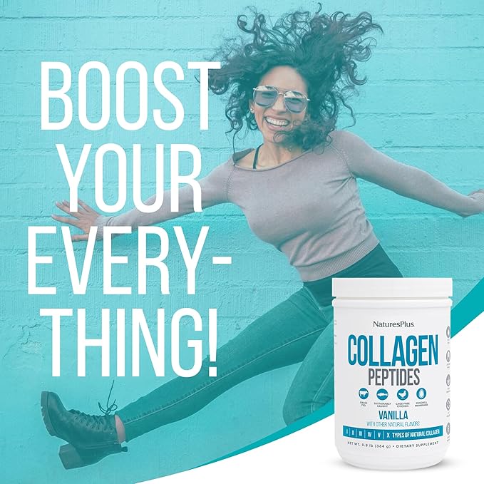 - Boost Your Everything; Boost the health of your hair, skin, nails, joints, immune system and more with the power of NaturesPlus Collagen Peptides in a delicious vanilla flavor.