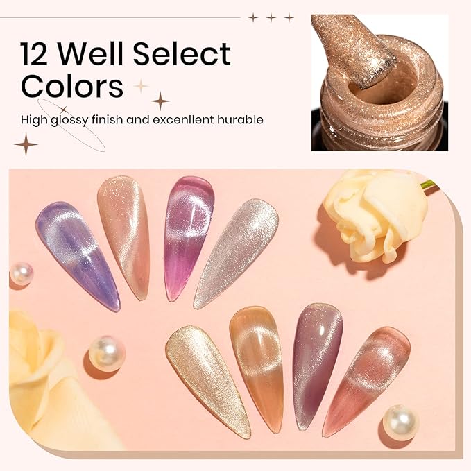 - Package Containts: You will get 12 different colors of Wide Cat Eye Gel Polish and 1 Magnetic, package with delicate box, it's the best gift for your mother, sister or friend