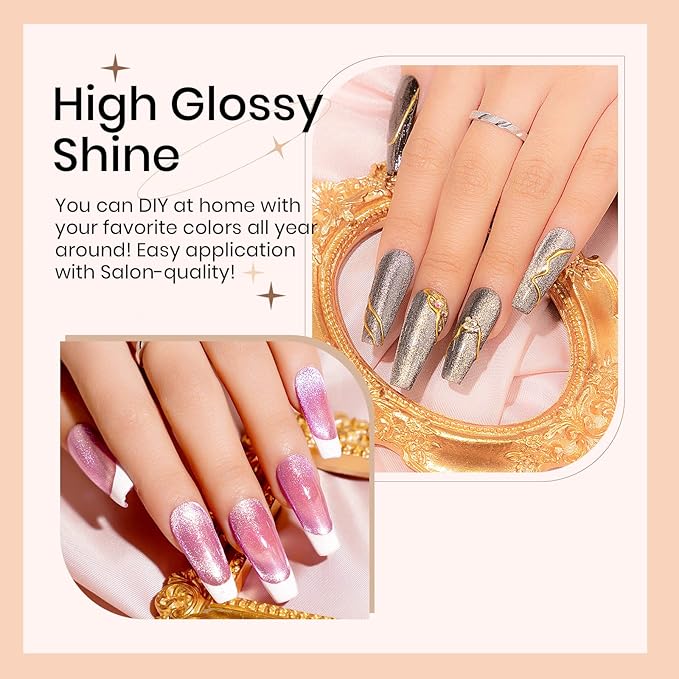 - Long Lasting: This Cat Eye Gel Polish require base and top coat, cured under UV/LED lamp, will last for 21+days with proper operation
