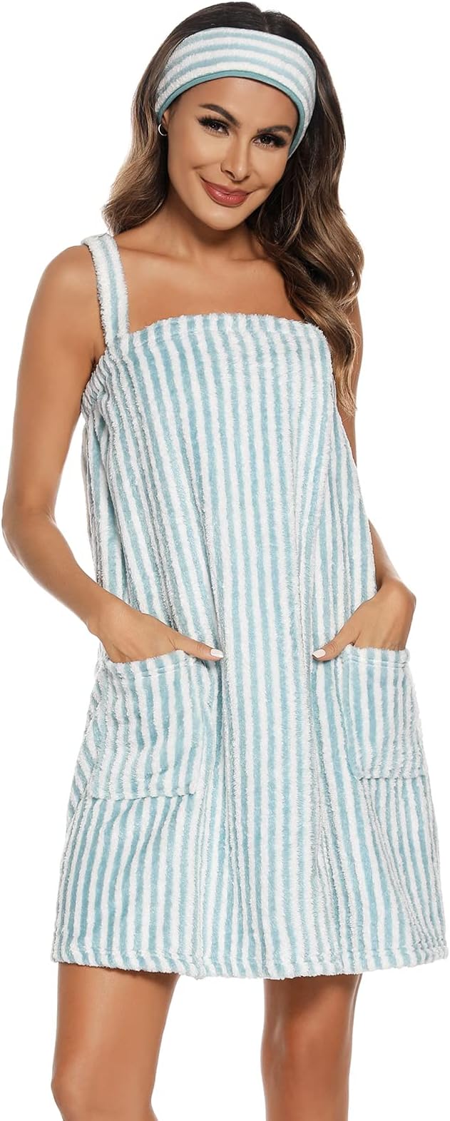 Veseacky Women Bath Wrap Towel for Womens Shower with Pocket Adjustable Spa Robe & Facial Headband