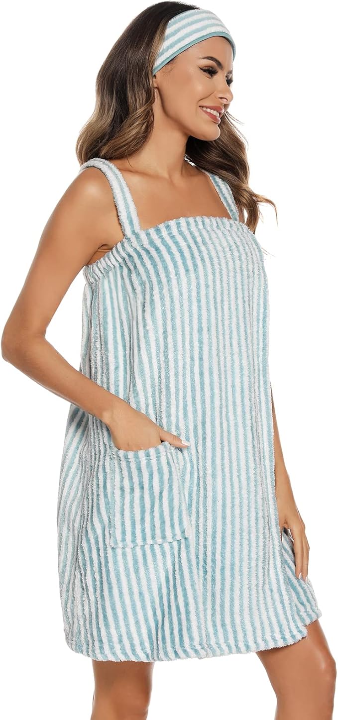 Veseacky Women Bath Wrap Towel for Womens Shower with Pocket Adjustable Spa Robe & Facial Headband