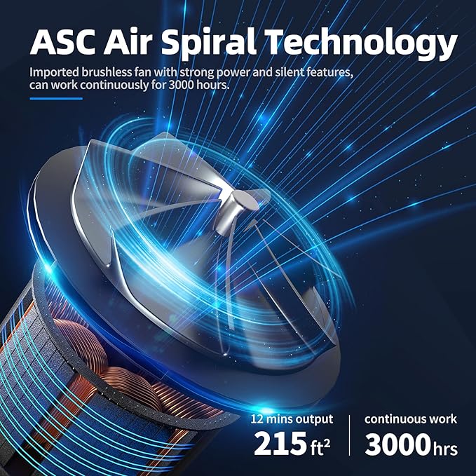 - High Circulation Rate: Enjoy clean and fresh air with AROEVE air purifier! Using advanced air spiral technology and 360-degree inlets, it refreshes the air per hour in spaces up to 215 sq ft/20 sq m. Experience a 25% increase in efficiency for a healthier and more comfortable living environment.