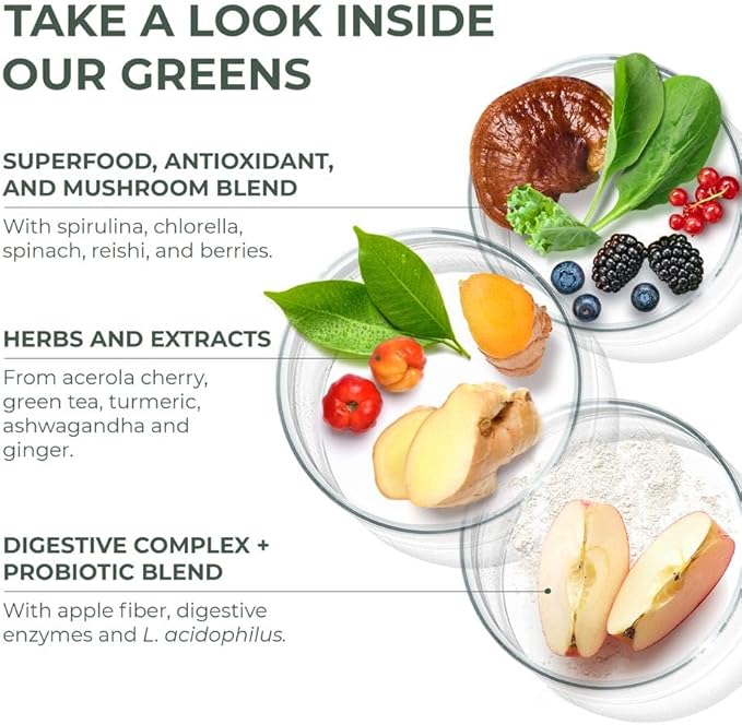 - Complete Nutrition: Powerful blend of over 50 fruits, vegetables, herbs, and mushrooms in one convenient daily scoop for comprehensive nutritional support