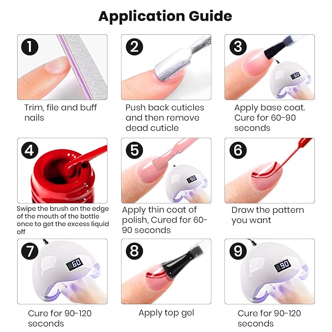 - LONG LASTING SOAK OFF:If used correctly,this high-quality painting gel nail polish can last more than 3 weeks. Need to be cured under uv/led nail dryer lamp,it can't dry by air.We highly recommend a minimum of 60 seconds with a LED light and 2 minutes with a UV lamp for each layer