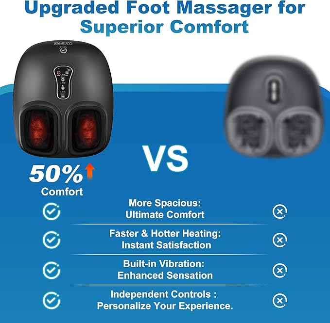 - Warm up quickly: Comfier foot massager heats up quickly in seconds and can reach temperatures up to 131F, making it an excellent foot heater and foot warmer for women and men to warm up their cold feet during winter. This feature also helps promote better sleep. The machine includes high/low heat settings, and the heating function can work independently. Gift for girlfriend