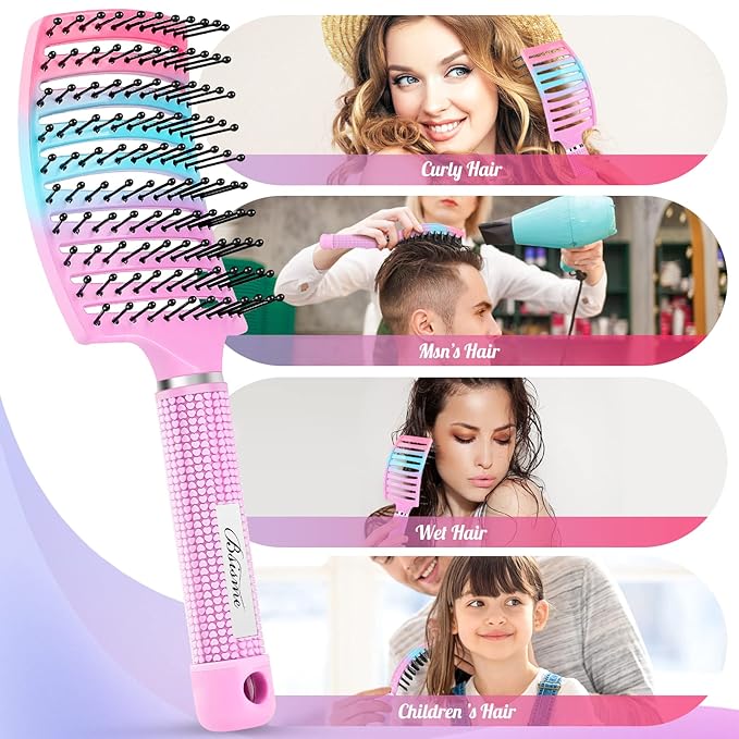 - Suitable For All Hair Types: Our paddle hair brush is suitable for everyone. The curved hair brushes for women and men easily work through wet, dry, coarse, fine, thick, or thin hair and the vented detangling brush works great for straight or curly hair