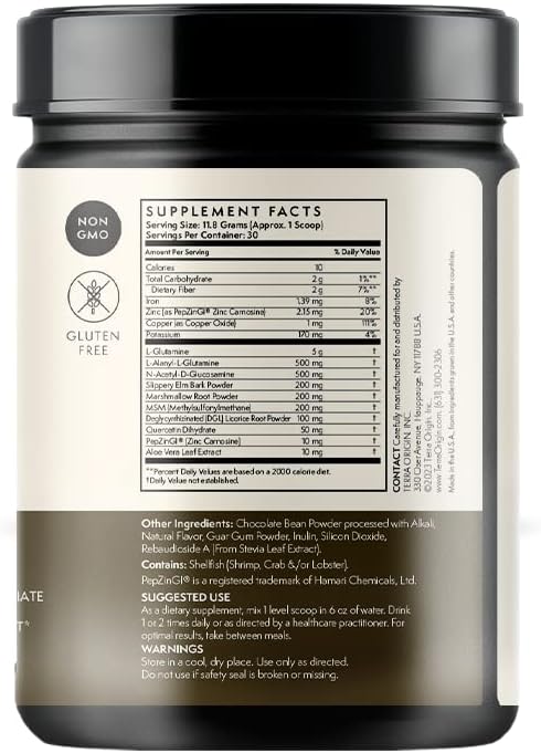 TERRA ORIGIN Healthy Gut Chocolate | 30-Servings with L-Glutamine, Zinc, Glucosamine, Slippery Elm Bark, Marshmallow Root and More!