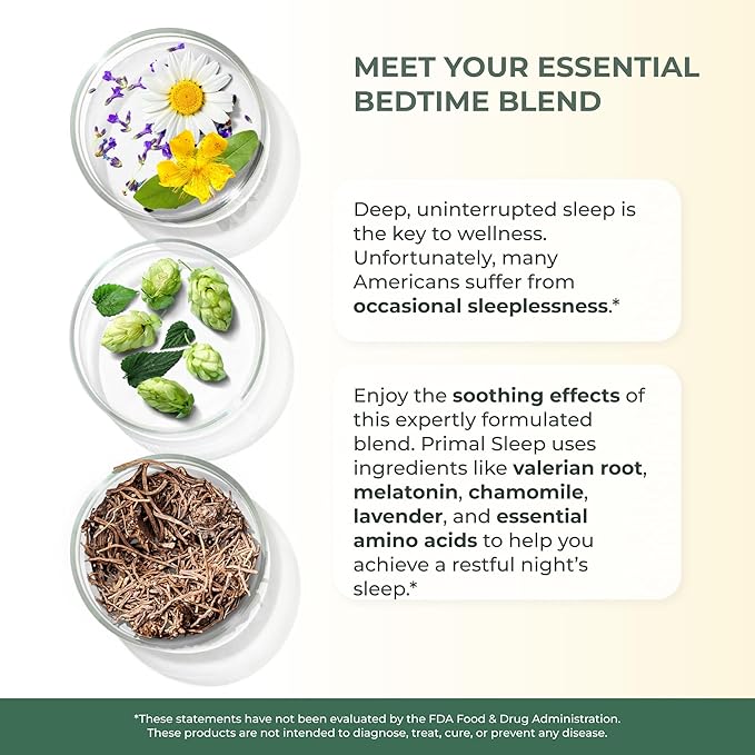 Primal Harvest 2 Pack, Primal Sleep, 120 Capsules with Valerian Root, L-Tryptophan, GABA, Chamomile, and Melatonin 3mg