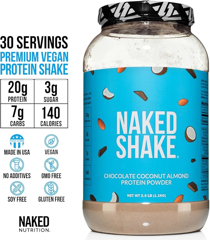 - SUPERIOR PLANT PROTEIN: Dairy-Free and vegan-friendly – made from yellow split peas grown in the USA and Canada. Chocolate Coconut Almond Naked Shake offers a complete amino acid profile, making it the ideal source of coconut chocolate almond plant based protein.