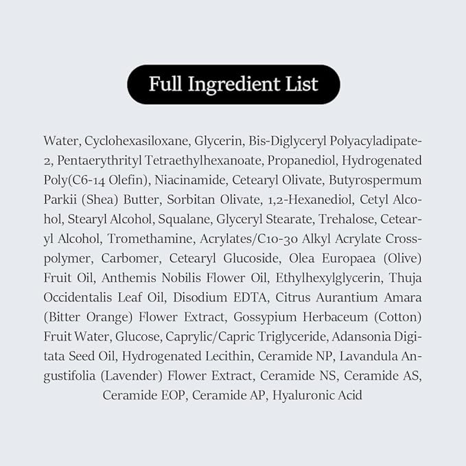 - 5 Ceramides, Hyaluronic Acid, and Niacinamide help protect the skin from external factors that can cause skin damage by forming a skin protective film and visibly reduce dark spots, age spots, blemishes