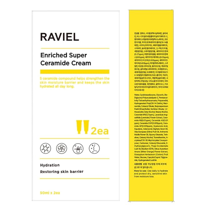 RAVIEL Enriched Super Ceramide Cream | Skin Barrier moisturizer | Hydrating Nourishing with Hyaluronic Acid, Niacinamide for Sensitive skin | Korean skin care (1.69Fl. Oz, Pack of 2)