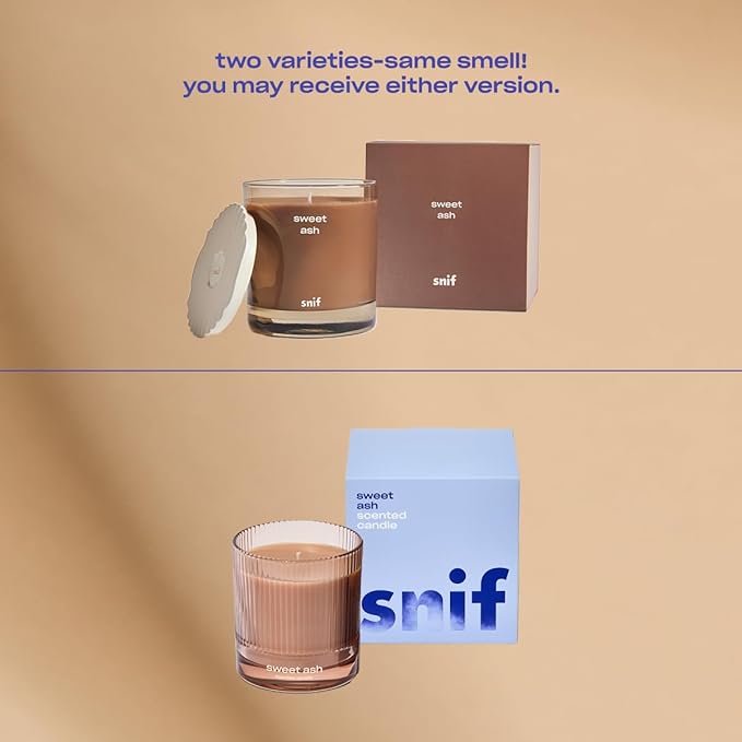 Sweet Ash Scented Candle by Snif, Low-Key Sweet and Earthy Scent, 50+ Hours, 100% Cotton Fiber Wicks, Soy Wax Blend, Non-Toxic, Vegan, 8.5 oz