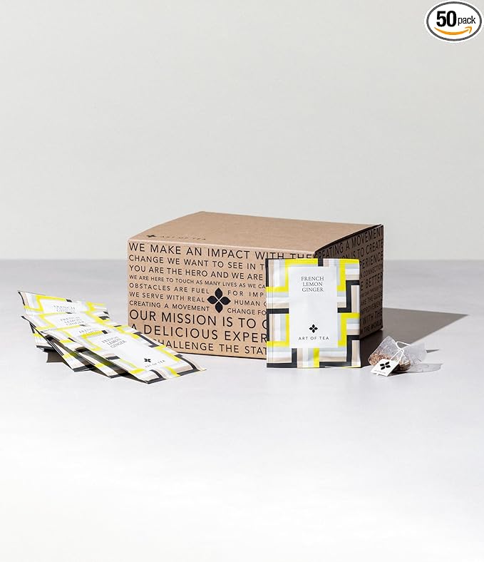 - DELICIOUS EXPERIENCE – Find your new favorite with this tea sampler pack from Art of Tea! Includes 50 tea sachets of Organic French Lemon Ginger Tisane Tea. A soothing organic lemon ginger blend comprised of spicy, grassy, and citrus flavor notes. French Lemon Ginger is a delightful pairing to any meal.