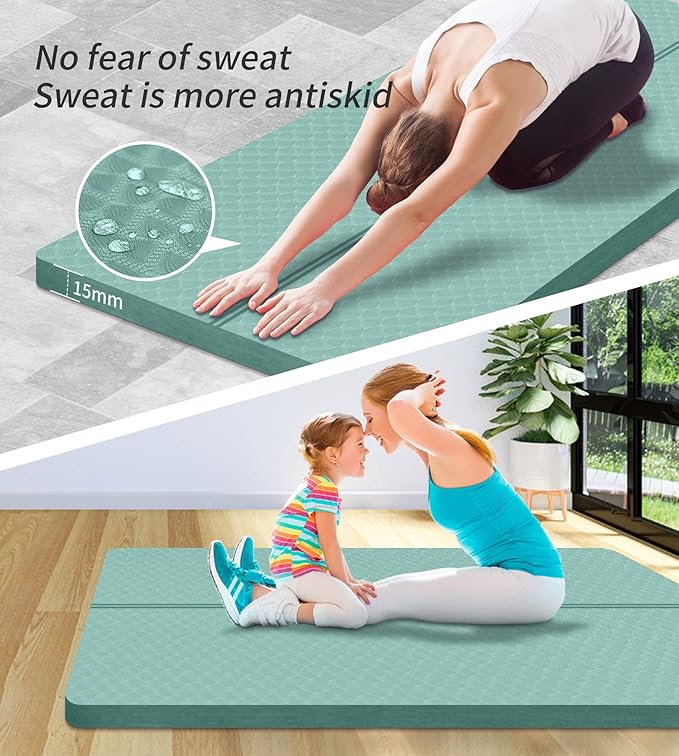 - ๐นNON SLIP SURFACE FOR ADDED STABILITY: The oversized mat has textured surface to enhance traction that you can perform any movement with confidence. Non-slip design aids in balance to hold postures much more longer and protect your joints and knees without compromising support or stability.