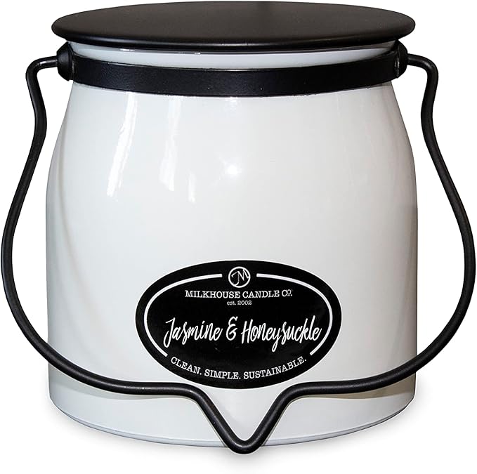 Milkhouse Candle Company - Jasmine & Honeysuckle - Creamery Collection - 16oz Double Cotton Wick Soy Candles with Beeswax - Long Burn Time, Made in The USA - Non Toxic, Premium Scented Candles