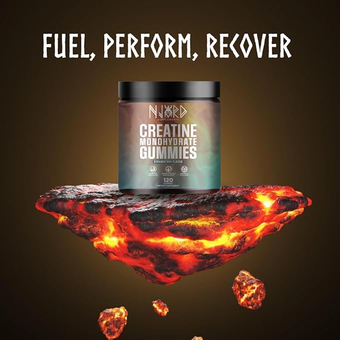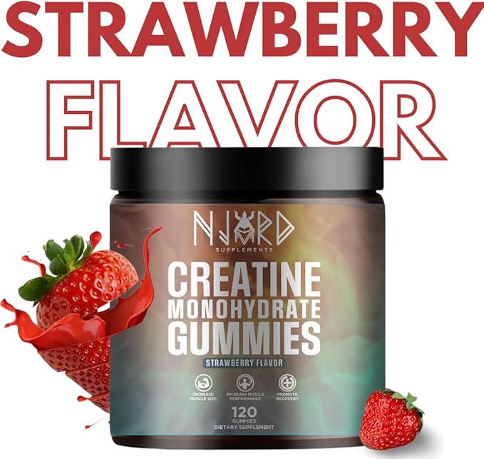 - Daily Dose of Creatine in Only 4 Gummies – With these delicious strawberry-flavored creatine monohydrate gummies from Njord Supplements you can stay ahead of the game by being consistent with your supplement routine. Just 4 gummy bears provide a precise serving of 5000 mg of creatine monohydrate.