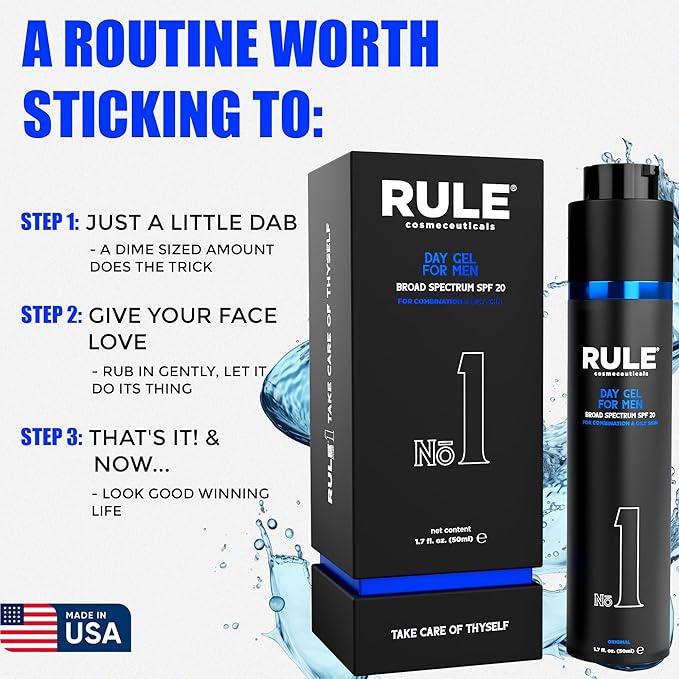 No.1 Day Gel for Men, 10-in-1 Anti-Aging Face Moisturizer to Reduce Wrinkles, SPF 20, Collagen, Vitamins B, C & E - Combination & Oily Skin - Original, 50 mL
