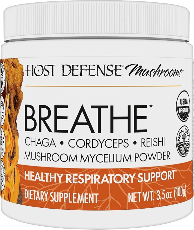 Host Defense Breathe* Powder - Immune & Respiratory Support Mushroom Supplement - Herbal Lung Health Support Supplement with Chaga, Reishi & Cordyceps - 3.5 oz (66 Servings)*
