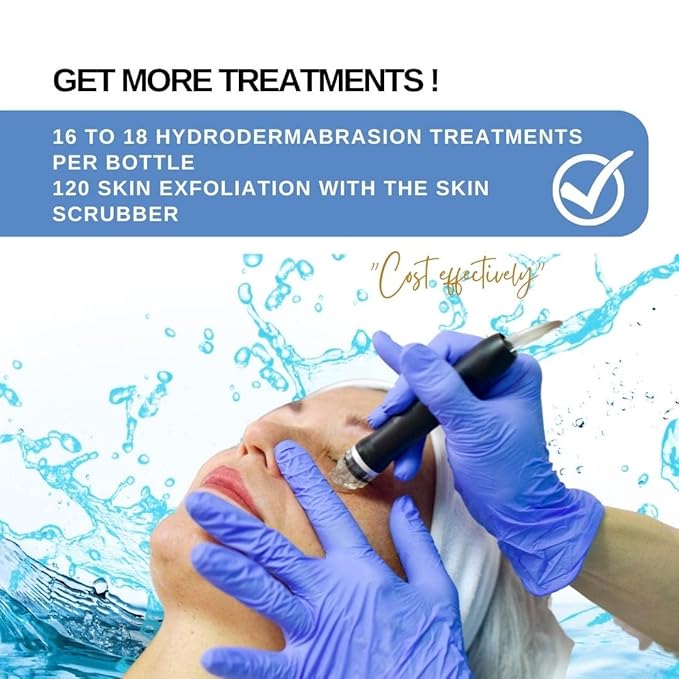 - MORE TREATMENTS PER BOTTLE. Each bottle contains 16 Oz of solution, you can perform up to 18 hydrodermabrasion or 60 sonic exfoliation treatments per bottle.