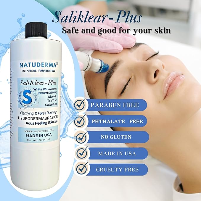 Hydrodermabrasion Serum SALIKLEAR, Extraction - Exfoliation -Unclog Pores Solution for Wet Microdermabrasion or Aqua Peeling machine, 16 oz. by Natuderma.