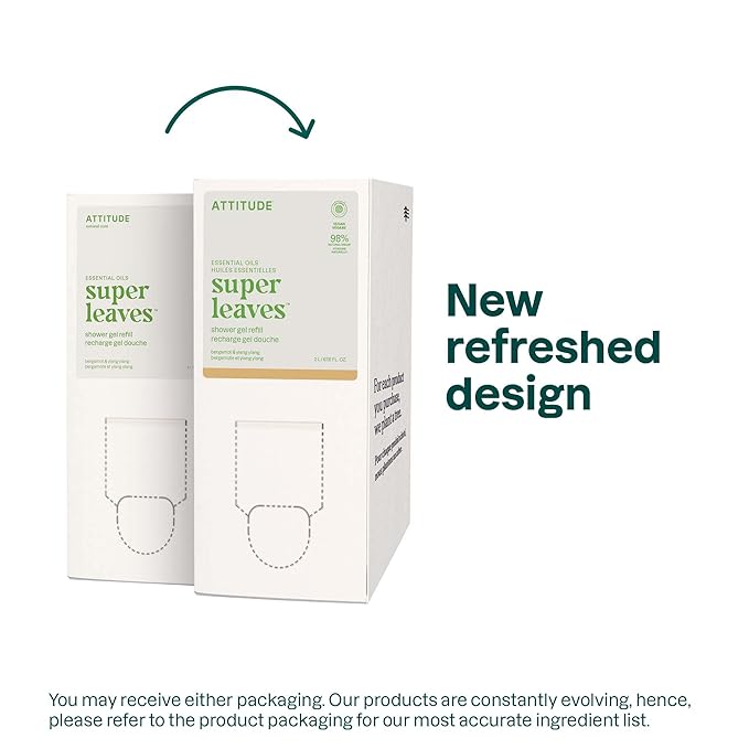 ATTITUDE Body Wash with Essential Oils, EWG Verified Shower Gel, Dermatologically Tested, Plant and Mineral-Based, Vegan Personal Care, Bergamot and Ylang Ylang, Bulk Refill, 67.62 Fl Oz