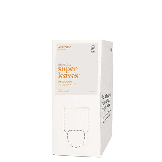 ATTITUDE Body Wash with Essential Oils, EWG Verified Shower Gel, Dermatologically Tested, Plant and Mineral-Based, Vegan Personal Care, Petitgrain and Jasmine, Bulk Refill, 67.62 Fl Oz