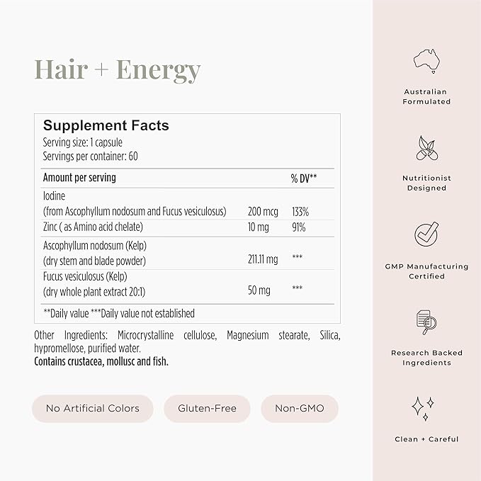 - Hair Health Support: Formulated with iodine and zinc to help maintain strong and healthy hair when combined with a balanced diet.