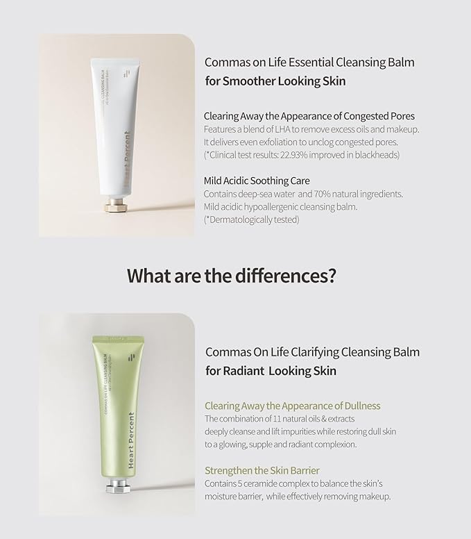 Heart Percent Commas on Life Essential Cleansing Balm, Sherbet-Oil-Milk Transforming Makeup Remover Vegan Daily Face Wash Cleanser for All Skin Types, 80ml (2.7oz)