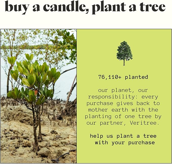 - Planet Conscious and Cruelty Free - This vegan candle is cruelty free, pet safe, and packaged in recyclable materials. Each purchase supports reforestation by planting a tree, allowing you to relax while helping care for the planet