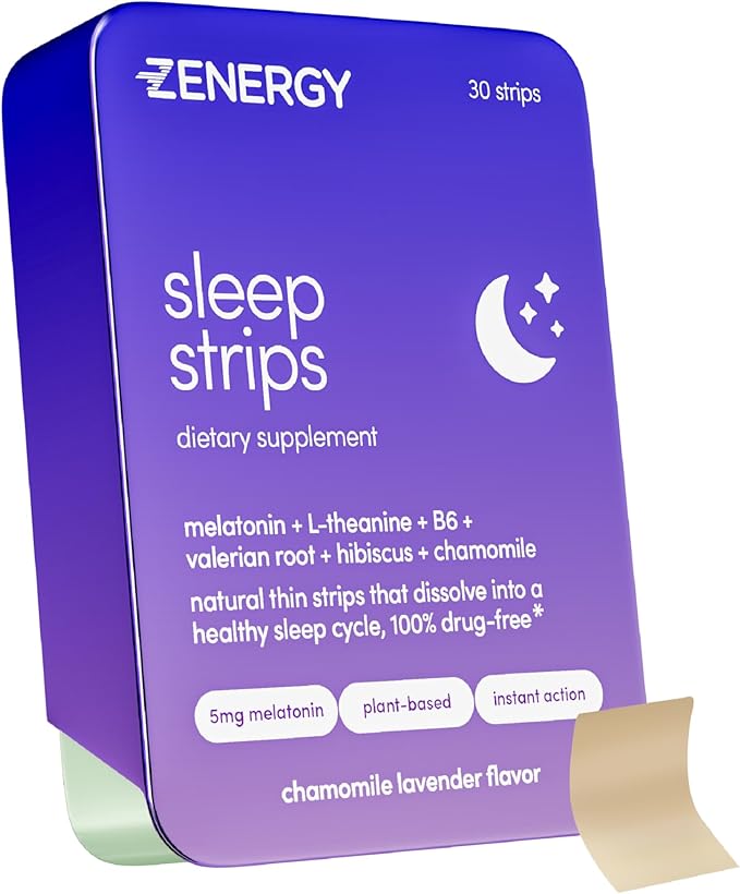 - RESTFUL SLEEP WITHOUT THE HASSLE: Drift into deep slumber with our ZENERGY strips, enriched with melatonin, l-theanine, B6, valerian root + hibiscus + chamomile. Ideal for travel, combating jet lag, stressful days, or simply ensuring a peaceful night’s sleep.