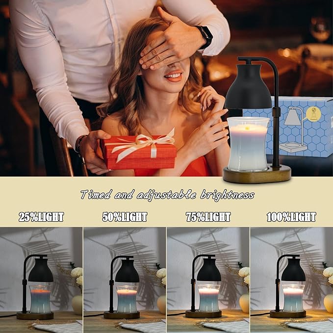 SOKCVSEA Candle Warmer Lamp - Candle Lamp Warmer with Timer Height Adjustable, Birthday Gifts for Mom Women, House Warming Gifts New Home Decor, Wax Melt Warmer with 2 Bulbs A.Black