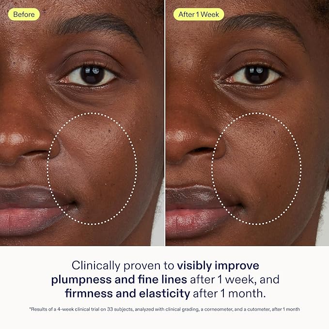 - CLINICAL RESULTS - Clinically proven to visibly improve plumpness and fine lines after 1 week & firmness and elasticity after 1 month. 94% said skin felt immediately soothed, less irritated & healthier. 95% saw visibly plumper skin after 1 week.