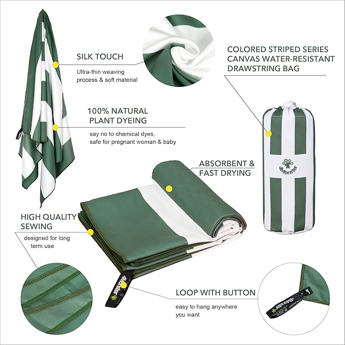 - 【100% Sand Free】Designed for beaches and camping,engineered to repel sand, ensuring that sand grains won't stick to the towel. After use, simply shake off the towel, and sand will easily fall off, making it hassle-free to clean.