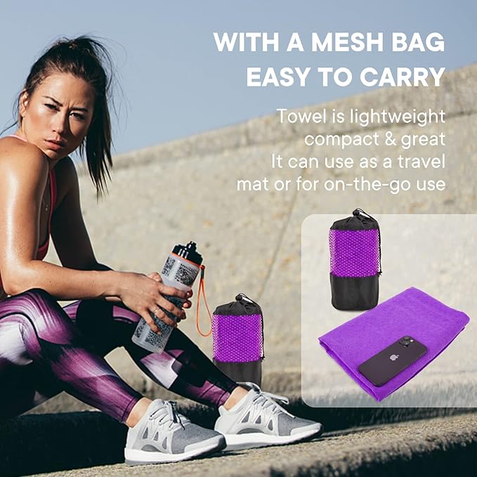 - HYGIENIC AND HEALTHY: By using this yoga towel on top of the studio mat, you can put a hygienic layer between you and the mat. This will increase your confidence and remove your worries about whose sweat and germs you'll be practicing on. It's lightweight, easy to carry, and fits nicely in your bag.