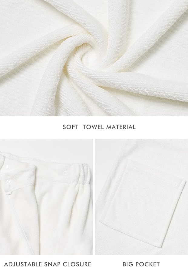 • Women Shower Wrap Material:Bath wrap for women uses terry cloth, which has good water absorption and keeps you dry. The softness, lightweight and breathable of bath body wrap towel will keep you comfortable throughout the year regardless of whether the weather is cool or warm.