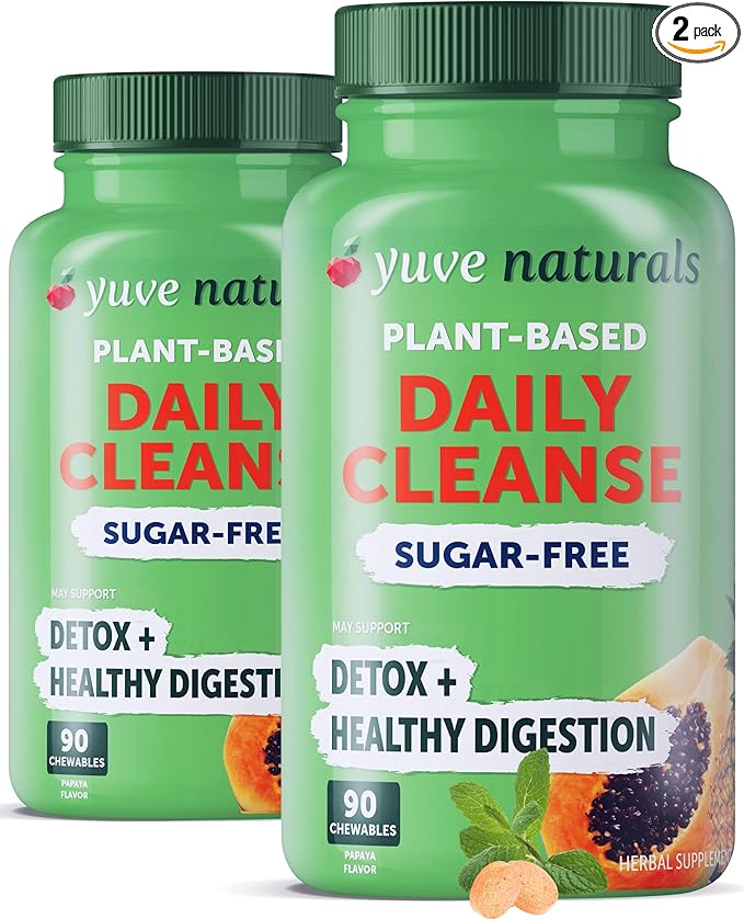 Yuve Natural Papaya Digestive Enzymes - Sugar-Free Chewable Candies - Promotes Better Digestion - Constipation & Bloating Aid, Detox, Leaky Gut Repair & Gas Relief - Vegan, Non-GMO (2 Pack of 90ct)
