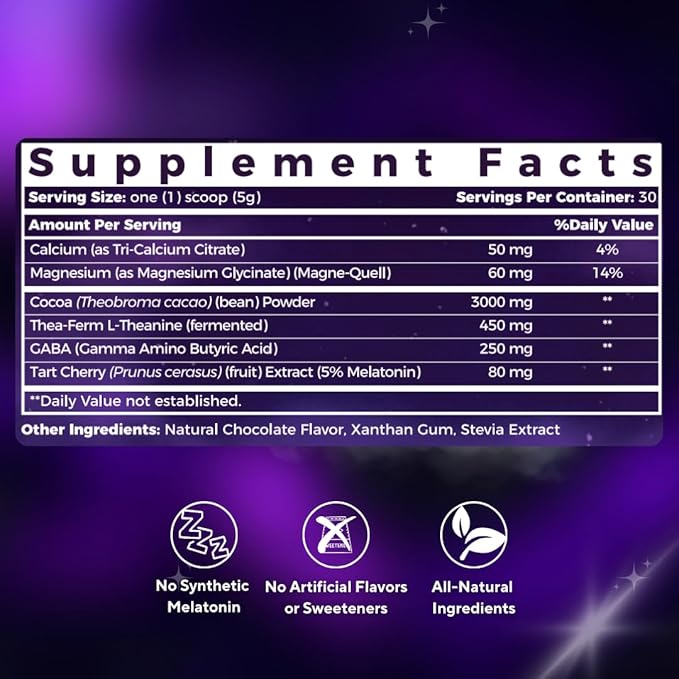 - 5-INGREDIENT NIGHTTIME BLEND: Featuring Magnesium, L-Theanine, GABA, Theobroma Cacao, and Tart Cherry, this blend is intentionally designed as a magnesium sleep supplement powder to complement your evening routine and support restful nights.